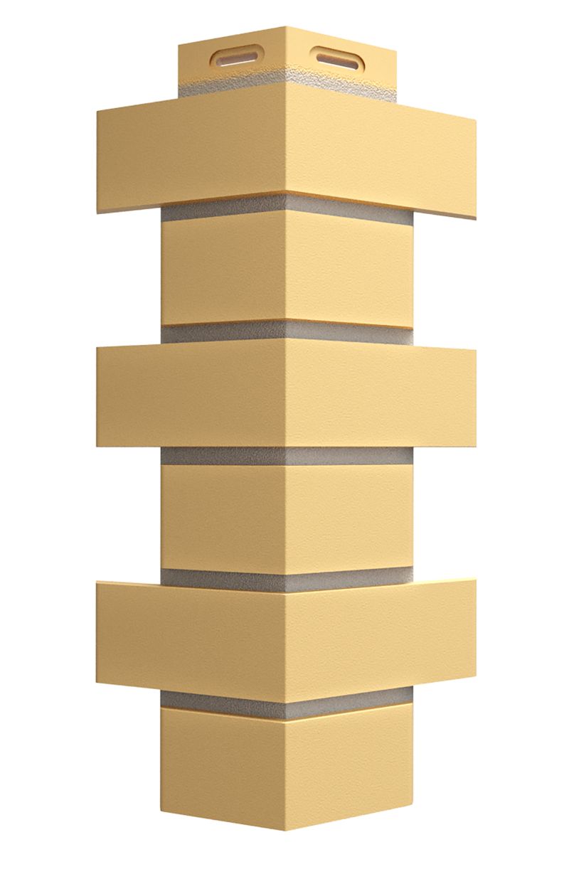 Фасадный угол используется для закрытия концов панелей на внешних углах дома. Имитирует фламандскую кладку и выпускается в цвет панелей.